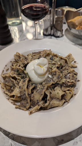 2024: Les choses ont évolué depuis 5 ans et je trouve l'ambiance plus légère et sympathique, c'est bon, cool, et pas trop hors de prix, c'est lumineux, coloré, accueillant avec un service agréable dans une belle et grande salle plutôt confortable — les vins sont appréciables — les plats à la truffe réussissent gustativement dans les entrées et moins dans les pâtes : à découvrir pour se faire son idée...