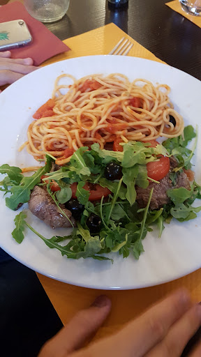 Le service est professionnel, la carte complète (pizza, pâtes, ...) et les pizzas sont bonnes (bien qu'elles pourraient être d'avantages assaisonnées). Un peu déçus par le tiramisu qui n'avait pas beaucoup le goût de café et les pâtes arrabiata pas du tout relevées.
