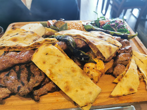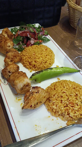 La salle est divisée en deux Une partie restaurant et l'autre kebab. Comme nous voulions un menu à 12 euros la serveuse nous a installé dans la partie snack. La partie restau a de meilleurs chaises, une plus belle présentation dans les assiettes. Le plat est affichée au choix donc nous avons choisi une brochette poulet , elle nous a eme demandé notre boisson pour compléter le menu.