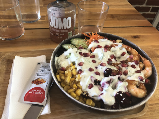 Read moreDe passage entre midi et 13h. Établissement qui semble neuf de l’extérieur (ouvert depuis 6 ans apparemment) mais certains détails laissent à désirer et gâchent vraiment l’image de marque de ce resto, au vu du concept original: toilettes très mal entretenues avec des odeurs d’urine et des traces dans la cuvette (à fuire!), temps d’attente assez long ( j’étais venue y manger et j’ai finalement pris à emporter), l’accueil est inexistant.( pas de bonjour, les commandes à emporter semblent être priorisées sur le sur place, dommage) Pour finir, le riz des onigiris n’étaient pas cuits, ça croquait sous la dent mais le poulet dynamite était vraiment extraordinaire dans l’équilibre des saveurs et avec sa sauce. Il n’existe pas de terrasse malgré ce qui est marqué sur certains...