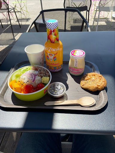On peut y manger sur place (il y a beaucoup de places assisses, fauteuils, chaises hautes etc) et à emporter. La déco est sympa.
