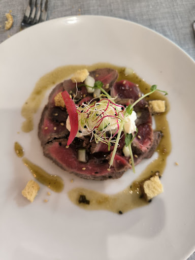 Not recommend. A glass of Kir Royal 8,50€. The most expensive I have seen so far. A 3-course menu for 36€. Not worth for it. Starter has only two ravioli stuffed with vegetables with watery sauce. Magret de canard is completely dry and wrongly cut. The waiter has no knowledge how to open a bottle of wine. He has cut the silver cover in pieces. No wine chiller for...
