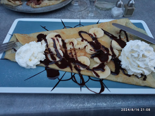 Read moreLa responsable ne porter pas de masque, elle la mis uniquement au moment de nous encaisser, la serveuse la retirer aussi a plusieurs reprise, sans compter qu'elle as passer la serpillère et nous as enmener les assiettes sans ce laver les mains entre ce qui es vraiment moyen. Elle parler aussi de sa vie personnel, nous avons entendu malgré nous ce qui est un grand manque de professionnalisme ! En ce qui concerne le repas, les rillettes étaient bonne, le foie gras également mais malheureusement il etais poser sur de la salade de qui es dommage car la vinaigrette influence le goût ! La galette tartiflette très bonne, la salade duo chaud étais bof, le pain de mie industrielle, et le saumons de très mauvaise qualité ! Pour la tomate 2 tranche couper en deux et très fade pas mur du tout ! Le dessert pour la crêpes gourmande rien à dire mais pour la crêpe Nutella un peut déçu car le Nutella étais poser sur la crêpe en quantité presque insuffisante. Un accueil correct et une serveuse gentille mais certains plats...