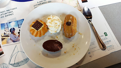 Read moreTrès déçus par ce restaurant. Nous arrivons un samedi midi à 12h20, nous sommes les seuls clients dans le restaurant mais nous sommes bien accueillis. Aucun bruit dans la salle si ce n'est la télévision qui marche très fort pour les employés qui travaillent... sans se soucier des clients. Pour ce qui est de la nourriture, les plats n'ont pas tellement de goût, portions généreuses mais assez fades. Même chose pour les desserts. Ce sont des plats classiques de restaurant mais pas pour ce prix là. MAUVAIS RAPPORT QUALITÉ/PRIX. Quant au service, étant les seuls dans le restaurant, on se serait attendus à mieux. Plusieurs choses : On nous demande si nous voulons du vins (nous n'en voulons pas) mais on ne nous débarrasse pas des verres, autant ne pas demander. On ne nous débarrasse pas non plus des bouteilles de soft vides après plusieurs passages. On nous a apporté nos desserts, nous ne sommes ensuite rendu compte que nous n'avions pas de petites cuillères, pas de couverts même. Plus personne dans en salle, tout le personnel était rendu discuter en cuisine, après avoir attendu plusieurs minutes devant les cuisines, j'ai du me servir moi-même dans les bacs à couvert du restaurant pour que nous puissions manger nos desserts autrement qu'avec les doigts. Dernière chose, la serveuse vient nous demander si nous avons fini nos desserts et commence à nous débarrasser des assiettes alors même que nous étions encore en train de finir les desserts. Nous nous sommes sentis chassés alors que nous ne sommes même pas restés 1h dans le restaurant et qu'il n'y avait aucun autre client.