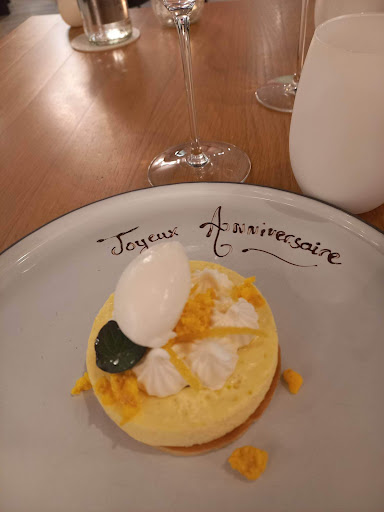 Read moreCuisine gastronomique innovante, raffinée, pleine de saveurs et les cuissons sont parfaites. Des plats succulents basés sur une cuisine de saison et un accord mets/ vins parfait. C'était excellent du début à la fin (Coup de cœur pour le dessert: Potimarron confit & agrumes en déclinaison / Fine meringue / Mousse légère verveine, Sorbet orange sanguin). La salle est très élégante. Service professionnel irréprochable et très agréable sans être trop présent. Personnel discret avenant et charmant et mention spéciale pour le chef Aurélien Jousseaume qui est à l’écoute de tous ses clients. Prix raisonnable vu la qualité des plats. Nous le recommandons donc grandement ! Superbe expérience culinaire, de l'entrée au dessert associations de saveurs exceptionnelles ! Bravo au chef et...