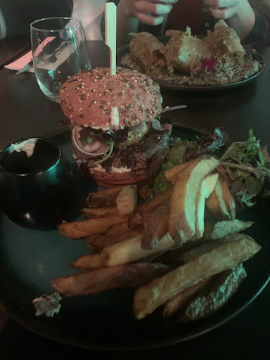 Venus hier avec mon chĂ©ri et vraiment déçus... dĂ©jĂ comparer les 2 photos, les 2 sont des risottos a 27âŹ, mais comment ils sont si diffĂ©rents !? je pense qu'on est tombĂ© sur une mauvaise soirĂ©e , je ne sais pas. On a commandĂ© une planche Ă partager, les gambas tempura grillĂ©s cramĂ©s, le jambon on dirais ceux en barquettes du supermarchĂ©, bref. On continue sur les plats, un burger sec, heureusement y avais quand mĂȘme une croquette de cammenbert dedans car aucune sauce, rien, c'Ă©tait sec ! On a commandĂ© un riz façon risotto , je regrette de ne pas avoir prit une photo car c'Ă©tait du riz sauvage simple, sec, du rechauffĂ© et le crĂ©meux on le cherche encore, avec des petites saint Jacques grillĂ©s.. Le riz Ă©tait encore plus sec que celui de la photo !!! mais au prix de l'assiette Ă 27⏠???? Le cuisto je sais pas, une mauvaise soiree peut-ĂȘtre mais mĂȘme en tant que serveur si on connais la carte on voit bien que c'Ă©tait pas un risotto avant de l'envoyer a table!!! Franchement... on a pas fini nos assietes...bref.. Le dessert, cafĂ© gourmand c'Ă©tait bien mais alors ma brioche perdue, la encore, une groooosse boule de glace et une riquiqui part de brioche qui ne faisait mĂȘme pas 1cm d'Ă©paisseur.. 11⏠pour ça.. La seule chose qu'on a aimĂ© ce sont les cocktails đ Les prix ce sont des prix gastro, mais le gastro s'est perdu sur la route.. dĂ©solĂ© d'ĂȘtre si cash mais soit c'Ă©tait la mauvaise soirĂ©e avec le cuisto, soit ce n'est pas de tout un resto pour manger!! Surtout pas Ă ces prix lĂ ! (On fais Ă©normĂ©ment de resto, on mange souvent chez des Ă©toilĂ©s comme souvent en bord de plage, la qualitĂ© on la connais, dĂ» mon commentaire). Concernant l'ambiance, faut tomber, la aussi sur la bonne soirĂ©e.. venant du sud, oĂč ça bouge, on Ă©tais vraiment déçus, l'endroit a du potentiel mais je pense qu'il faut creuser encore đ Peut-ĂȘtre bon endroit pour des cocktails et aprĂšs 22h (selon les soirĂ©es) mais...