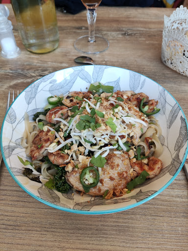 Déjeuner : Ambiance chaleureuse. De la pierre, du bois et de la verdure avec plein de lumières électriques. Ça sent le resto bien tenu. Bière IPA commandée en 33cl mais au moins 40 cl de servi. Repas pad thaï crevettes et poulet. Belle présentation et belle portion. Goût : quantité d'épices adaptée au palet européen mais trop faible pour les amateurs d exotisme pur. Des produits frais dans l assiette ce qui se fait rare aujourd'hui. Les crevettes manquent de croquant mais cela est dû à la marinade qui a durée trop longtemps mais au moins les crevettes ont du goût. Le poulet est bien cuit et toujours moelleux (non sec). Pas déçu d'avoir choisi ce resto pour le déjeuner. Mais toujours attiré par les assiettes des autres l assiette bo bún sera mon prochain choix car je reviendrai très certainement dans ce resto si je repasse sur la Roche sur Yon. Bon comme l'appétit vient en mangeant : dessert riz au lait revisité C'est bon mais sans plus. Servi trop froid. Laissez se réchauffer 2 minutes pour profiter pleinement de saveurs. Mais au final. Ce dessert sort de l'ordinaire. A...
