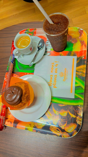 Lovely little cafe with a toilets at the back and the illusion of a lovely jungle at the front. Perfect for a weary traveller Seating inside and out (on a pedestrian street and beside a quite little road) The food on display was a feast for the eyes, so much to choose from and all looked good. Coffee from a machine . Person behind counter had better English than I had French so I had no...