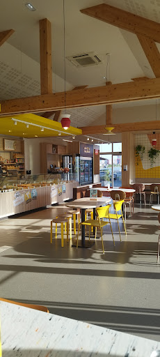 Read moreBoulangerie très bien placée, visible et facile d'accès. Elle est très agréable, propre et lumineuse avec un grand espace pour manger sur place. Le choix des sandwichs est très varié, à noter toutefois qu'ils sont en libre service il faut donc vous servir avant d'aller en caisse (le panneau est peu visible car posé à plat sur le haut des vitrines). Je n'ai pas goûté les desserts mais ils font très envie.. Je recommande cette boulangerie mais je mets une note de 3 pour son agencement qui selon moi est à améliorer sur 2 points : le parking qui est un peu brouillon, on ne sait pas si on peut se garer devant, sur la droite qqs places mais devant un autre batiment et à gauche un parking en épi mais en sens inverse de notre arrivée, il doit falloir faire le tour du bâtiment mais il y a un accès drive ?! ... Ensuite l'entrée et la sortie devraient être à mon avis inversées afin de rentrer face à la vitrine des sandwichs, faire son choix, se servir puis passer en caisse et sortir ou aller en salle. Actuellement on rentre et on se retrouve directement devant les caisses du coup on ne voit pas qu'il faut se servir et quand on va voir les sandwichs on perd sa place dans la file d'attente. Donc à étudier et sonder la...
