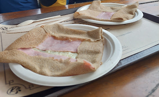 Crêperie du puy du fou près du spectacle le dernier panache. Personnels accueillants, agréables et sympathiques. 3 Choix de galette et autres choix variés de sandwichs, salades et boissons et dessert. Service un peu long et un peu d’attente même en allant tôt (avant 19h). Galettes jambon/ fromage, bonne, bien cuite et chaude. Crêpe bonne également. Vittel bien fraîche. Prix de la formule correcte mais un peu cher quand on prend a la carte mais parfait...
