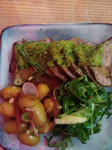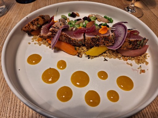 Read moreUne jolie découverte qu'on regrette ne pas avoir connu avant ! Peu de choix de plat mais ils sont tellement bons, on a été agréablement surpris. Et la qualité des plats et équivalente à la qualité du service. Merci aussi à la personne présente en salle, pour cet accord plats/boissons (PS : le délice de caramel frappé en fin de repas porte bien son nom, c'est un véritable délice) Nous avons passés une merveilleuse soirée dans ce restaurant et nous reviendrons sans aucun doute. Sans oublier de le conseiller aux gens autour de nous. Merci à vous tous,...