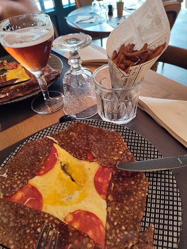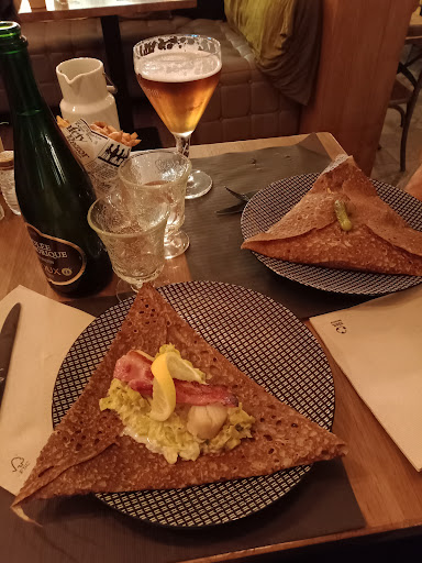 Read moreLes 3 étoiles c'est pour la déco et rien que pour la déco ainsi que pour le serveur très courtois. Sauf qu'on ne va pas au restaurant que pour un joli mobilier et un décor agréable. Et pour le reste, le résultat n'y était pas... Les spritz n'avaient absolument pas goût de spritz, tout juste de fanta dilué dans l'eau et les glaçons. A 7euros le cocktail - prix plus que raisonnable pour un vrai spritz - on est en droit d'en avoir le goût. Et là j'insiste mais c'était fade, sans saveur...Donc déjà apéritif décevant et j'appréhende la suite. Ensuite les crêpes, de taille relativement petite et avec un manque cruel de garniture. Si on apprécie de pouvoir composer sa galette, on aimerait que celle-ci soit un peu plus fournie. Un tout petit morceau de raclette, des pommes de terre qui baignent dans l'eau et diluent le goût...pour 14 euros tout de même. J'ai mangé dans des crêperies beaucoup moins chères et qui proposaient des galettes mieux garnies avec des produits de meilleures qualités. On reconnaît les produits vendus en gros à Métro et qui n'ont des saveurs que très banales. Pas de petite salade pour accompagner, dommage. A la fin de ma galette et même si j'avais faim, je n'ai pas voulu prendre de dessert. Les prix sont très nettement au dessus des prestations et quand je lis les avis d'autres internautes, je demeure perplexe... Je suis déçue car le cadre donnait à penser que le repas...