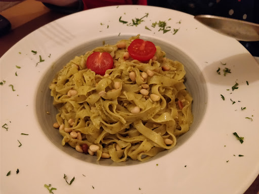 Nous nous sommes laissés tenter par la carte proposant un menu porté presque exclusivement sur des tagliatelles fraîches avec plusieurs déclinaisons possibles. Petit bémol sur la lecture de l'ardoise posée à plat entre deux tables, une façon peu commune d'accueillir chaleureusement sa clientèle. Nous avons pris une entrée. La promesse du croustillant au chèvre n'est pas tenue. On est plus sur des lasagnes. L'attente était sur le croustillant et sur une entrée plus aérienne. Le saumon fumé était bon. Ensuite, au niveau du plat, concernant les tagliatelles au brocolis et tomates séchées, il faut s'y tenir au strict minimum de ce qui est marqué sur la carte (sans compter le parmesan sur la table en service à volonté). Les pâtes sont collées entre elles, un plat que l'on peut faire chez soi. Un "assemblage" de pâtes+brocolis+tomates séchées avec un peu d'huile d'olive. On attend un travail sur une cuisine plus généreuse au niveau du brocolis (une crème au brocolis par exemple ?) avec davantage de tomates séchées ou inversement avec des herbes/graines ou autres venant pimper l'assiette. Sur l'assiette trio pièce du boucher, la cuisson était bonne. Par contre les frites manquent d'authenticité à commencer par leur couleur, très blanchâtre et...