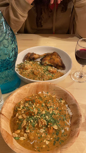 Read moreNous sommes venus un vendredi soir à 2 pour goûter de la cuisine africaine et il est clair que nous n'avons pas été déçus ! Le cocktail bissap est harmonieux et le vin assez fruité malgré un goût d'alcool un peu prononcé. Les entrées sont trÚs bonnes, pain à l'ail chaud et avec du goût, bananes plantain et houmous trÚs bon également le goût été présent et prononcé. Mafé au poulet et végétarien succulent, bonne maßtrise des épices et de la cuisson des ingrédients. En désert le tiramisu spéculos-caramel était vraiment bon, bien meilleur que le tiramisu classique n'aimant pas la partie imbibée du fond (avis totalement personnel). Nous y retournerons avec grand plaisir au vu du prix qui est raisonnable au vu de la quantité et de la qualité des aliments. Merci...