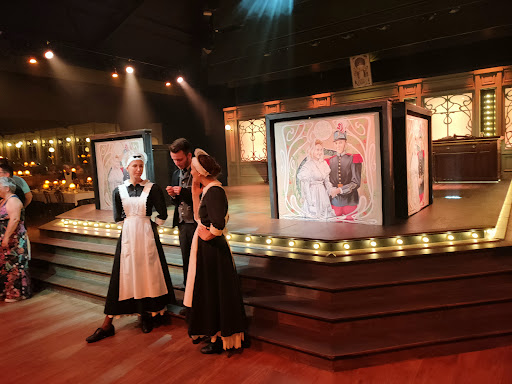 Read moreIt's a stylish piece of cabaret in a grand cafe in the belle epoque era, with us diners (740 of us I'm told) sitting around three sides of the stage. The show starts with an about-to-be-married couple (we are the wedding guests) but it's set in 1914. What could possibly go wrong? Yes, war gets in the way. The cast of dancers & singers are slick and professional, and quite a few of them double up as our waiters too. The meal is good, but it's a set menu and rather limited. For example there's no real choice of drinks - I hope you like red wine or water!
