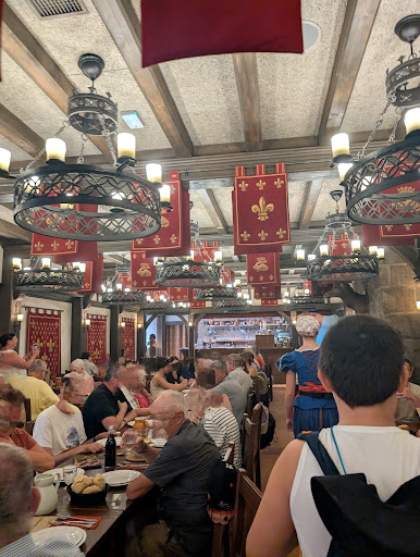 Upon entering the restaurant it felt like stepping back in time. The space isn't big which is nice because it doesn't get crowded. At first, everyone was quiet but after a few sips of red wine the conversations started to flow ☺️ The servers were very nice and attentive and since it was a sit down meal everything was served to us. The food was great and the portions were large. When we arrived at our table the appetizers were already waiting for us. There was a big bowl of potato salad, some cold cuts with cornichons and bread. My son on the other hand had a different meal. For his appetizer he was served a mousse de canard which he didn't like so he ended up eating our food 😅 For the main course, we had a large portion of pork with choucroute. We truly enjoyed this meal as the pork was cooked so well we couldn't even taste the grease or fat. My son happily devoured his two large sausages with vegetables. The food was beautifully prepared. A small resealable glass bottle of red wine and a clay pitcher of cold water were also included in the meal. If you want an extra drink like a soda you will have to pay it on the spot and they will deliver it to you. To end our dinner we were served a delicious gâteau Charlotte au chocolat with crème anglaise and an option of either coffee or tea was also part of the meal. As for the kids, they served a popsicle. We were so full and contented afterwards. It wasn't a buffet, but we thoroughly enjoyed our meal. I highly recommend this...