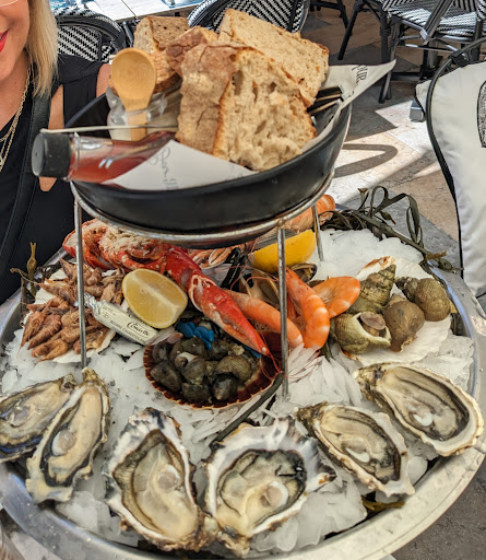 Read moreI reserved a table for 4 for lunch well in advance. I was excited to dine outside with a spectacular view. It was a hot day, so we chose a shaded table towards the back of the covered patio, so a view wasn't really possible, which was totally fine and a trade-off I was absolutely happy about. The tables/chairs are a bit spindly, so take care when sitting. The hot day called for an Aperol spritz, which was spectacular. We shared several dishes, all seafood platters. Everything was fresh and delicious. We particularly loved the prawns and crab legs. We did visit the interior and it was so beautiful and cozy, it would be the perfect spot on a colder day. Service was friendly enough, though somewhat difficult to get attention for additional water. Overall,...