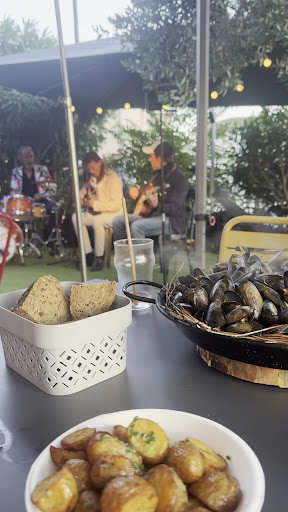 Read moreWas für eine tolle Entdeckung! Wir waren den ganzen Tag mit Fahrrädern auf der Ile de Ré unterwegs. Auf der Suche nach einem Restaurant fürs Abendessen sind wir hier gelandet. Wir waren etwas früh und konnten erstmal nur etwas zu trinken bestellen. Aber das Warten hat sich gelohnt! Der Service ist sehr aufmerksam und freundlich. Überhaupt waren alle Mitarbeiter dort gut gelaunt und zugewandt. Es gibt eine Tageskarte, die auf Tafeln ausgeschrieben ist. Wir hatten ‘Eclade de moules’ , eine Spezialität der Atlantikküste. Dabei werden Miesmuscheln auf einem Holzbrett angerichtet, mit Piniennadeln bedeckt und über offenem Feuer gegart. Das gibt den Muscheln einen rauchigen Geschmack - ein sehr aussergewöhnliches und tolles Geschmackserlebnis. Dazu hatten wir noch den Oktopussalat, der auch köstlich war und gegrillte Sardinen. Als Getränk unbedingt den inseltypischen Pastis der Ile de Ré probieren! Der wird nämlich nicht aus Sternanis gemacht, sondern mit Fenchelsamen und Kräutern der Insel. Alles sogar Bio-Qualität. Am späten Abend gab es noch Live Musik auf der Bühne nebenan. Ein fantastischer Abend! Für Familien eignet sich dieses Outdoor Restaurant auch sehr gut, weil direkt gegenüber Kinderkarussells und ein Spielplatz sind. Minigolf kann man dort auch...