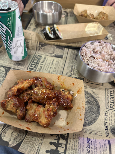 I'm convinced the other reviews are owner's fake accounts, so listen up folks. Worst disappointment of the last 3 years, no cap. I should've recognized the signs honestly. First off: 15 minutes of waiting to even order, once we did the waitress started to explain to us how the chicken is made and was weirdly insisting on taking the wings with a sauce (later you'll find out why). We got chicken wings without sauce (as I wanted) that tried to compete with McDonnalds for the most tasteless chicken of 2025 (not what I wanted). It had no spices, just a dull, tan, semi-crispy layer of flour covering an uninteresting inside (I didn't know you can utterly deprive chicken of its taste but hey, you learn every day). We got pieces of chicken with what was supposed to be a mustard-honey sauce but turned out to be the same tasteless chicken, just covered in some sticky gluey yellow overgrowth tasting 100% like wasabi (you know how your nose is suddenly hit with a spicy wave when you put too much wasabi in your mouth? Yeah, that should give you an idea). But yo yo yo, last but not least, the prize for the worst dish I've ever eaten so far goes to their teacup-sized bowl of tteokbokki. (Spoiler alert: it's the same stuff you can buy in the shop nextdoor.) It arrived later than other dishes (got to cook it from the bag I guess). Sweet and spicy it was, but oh boy had it nothing to do with Korean food. Olololo was it nauseatingly horrid. No fishcake with it either, just a ton of onion to cover the fact it was instant food bought in the supermarket. Oh, and before I forget, they put in it half an egg, which, I'm honestly interested in how do you make an egg that gelatinous, it reminded me of squid (I'm on my fourth sigh since I walked out of there). There were three people sitting next to us looking at our unfinished offal considering taking it, I spoke up and told them it'd be better if they went somewhere else, listed the sins, they thanked me, exited the slaughterhouse. So I hope some other place today's gonna get a better review (this is the first online review I ever leave, it was so bad, I post it with my girlfriend's account, let the gravity of the thing sink in lol). Oh, also the continuous Blackpink on the radio - I like the band, but it was an early warning too, along with the cook being some young French person who never ate Korean food it seems. Place was also decorated with drinks, expired by 2 years, so I'm glad I didn't fall into that...