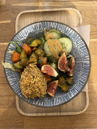Read moreAlors. Le restaurant est mignon, il y a deux salles une donnant sur la rue et une situĂ©e Ă lâarriĂšre. Le restaurant propose une jolie terrasse Ă©galement. Les prix sont raisonnables et le restaurant propose de chouette boisson avec plusieurs option de lait vĂ©gĂ©tal. En revanche certes les plats sont bon bien Ă©laborĂ© avec de belles saveurs mais jâai trouvĂ© que ça manquer de gĂ©nĂ©rositĂ© pour de la salade verte et que câĂ©tait ultra huileux. A 13h il nây avait plus de plat du jour, ni wraps, ni desserts⊠Sur le mĂȘme principe on mâa servi un seul morceaux de pain vraiment pas Ă©pais et a se demander sâil Ă©tait frais tellement quâil Ă©tait dur. Une fois installĂ© jâavais lâimpression dâĂȘtre une Ă©trangĂšre dans le restaurant. Jâai lâimpression que si on nâest pas un habituĂ© du restaurant on peu oubliĂ© lâamabilitĂ© et lâintĂ©rĂȘt...