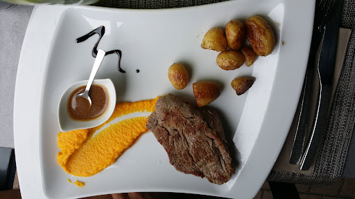 Read moreUne adresse intéressante, la vue sur le parking n'est pas des plus esthétique mais ça permet de se stationner facilement, la décoration est sympathique et l'accueil acceptable même si on pourrait s'attendre à mieux après lecture de l'un des tableaux accroché au mur. On y mange bien pour un prix très abordable 11€50 pour le plat et entrée ou dessert et 13€50 pour les 3, même le samedi midi, ce qui est rare. Il est conseillé de réserver surtout le soir et le dimanche, nous y sommes allés un samedi midi des 12:15, le restaurant etait vide mais s'est vite rempli et il était complet le soir et dimanche midi. La viande etait bonne et cuit comme il faut, le poisson un peu moins bien, goût d'amoniaque typique d'une cuisson trop forte ou trop rapide. pour le vin rouge en pichet il est bon mais toujours aussi cher à 8€ les 50cl, bonjour la culbute mais c'est malheureusement comme ça partout. Une adresse à retenir avec un bon rapport...