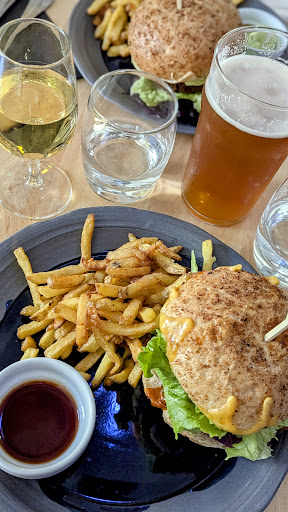 Read moreIch bin jemand , der versucht im Schlechten noch was Gutes zu finden. Also ich bin kein Freund von MC- Burger 🍔. Da hat der Körper Besseres verdient. Diese Burgerkette ist seit dem Besuch im La Fabuleuse on La Rochelle um einige Stufen nach oben gerutscht. Das war der gute Teil ! Nette Einrichtung, freundliche Mitarbeiter, schöne Rockmusik Als Speisen gab es eigentlich nur Burger, nicht das, was im Internet angezeigt wird. Notgedrungen bestellten wir eine Speise des Tages ( Chickenburger ) und einen Burger Pulled pork. Ein kleines helles Guinness und ein großes Grimberger ambree. Es 2 riesige Brötchen, ein Blättchen Salat ! Kein Käse, keine Tomaten, keine Zwiebeln, keine irgendwie auffallenden Gewürze. Dann habe ich zum ersten Mal schlaffe, dunkle Pommes Frites, wie in der Mikrowelle gewärmt bekommen. Das war eine kulinarisch vermittelte Körperverletzung. Für diese, ausser fettig, nicht weiter erwähnenswerte Katastrophe der Küche, durfte ich 48,00 € bezahlen. Ich bestand auf Rückgabe des Wechselgeldes. Wenn ihr wirklich einmal Geld zum Fenster rauswerfen wollt, verderbt euch...