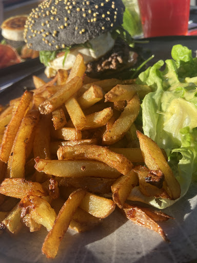 En ce qui concerne les assiettes, un GOAT burger : steak, chèvre, miel-moutarde, frites bouillantes et bien bonnes + salade, et un pain noir, plutôt original, mais bien moelleux. Et à côté de ça, une salade chèvre miel en REPAS (attention car deux versions possibles) très copieuse. Dans le cas de la salade, il se peut que les tranches de chèvre soient trop épaisses et donc paraissent un peu écœurantes après quelques morceaux, mais sont excellentes en goût !