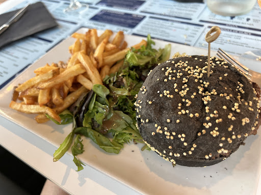 Attention, mon avis est totalement personnel et je lâassume (ndr : il nâengage que moi). Comment dire ⊠cet Ă©tablissement semble la brasserie la + luxueuse du Port. Elle fait « belle » et mĂȘme un peu guindĂ©e. Le personnel est nickel chrome et la cuisson parfaite. Cependant, je relĂšve quelques points noirs dans cette « voile blanche » : le « Bordeaux » rĂąpe » vraiment trĂšs fort (il « tabasse » = je nâai pas fini mon verre et câest une des trĂšs rares fois oĂč ça mâarrive) ; la viande a beau ĂȘtre de qualitĂ© et la cuisson parfaitement respectĂ©e, la portion est trop « Minime » (ndr : pas comme le Port âŠ) ; je nâai pas apprĂ©ciĂ© la salade faite avec amour mais Ă lâĂ©conomie ; et la cuisson des frites Ă©tait parfaite (Ă mon goĂ»t : bien dorĂ©es Ă lâextĂ©rieur mais trĂšs moelleuses Ă lâintĂ©rieur = pas sĂšches du tout, ni huileuses, signe que le cuisinier est bon). Cependant, il y a un problĂšme que jâai du mal Ă dĂ©finir avec les 3 seuls critĂšres imposĂ©s par la notation Google. De plus, mĂȘme si les WC Ă©taient trĂšs propres, on voit vite « le vernis craquer » : bas des portes moisis, crochet de fermeture de type camelote bricolĂ©e, porte « flottante » de type baladeuse,, une robinetterie complĂštement HS dans un WC, etc ⊠Bref, tout semble fait Ă lâĂ©conomie alors que ça pourrait ĂȘtre super. Jâai relevĂ© Ă©galement la prĂ©sence rĂ©currente de moucherons qui sont absents chez le voisin « LâIndigo » (donc un peu inexplicable, vu que le personnel est nickel ?!). Il y a peut-ĂȘtre un problĂšme de plomberie dans cet Ă©tablissement ? Une rĂ©novation basique sâimpose peut-ĂȘtre ? Bref (WC), Ă mon humble avis, il sâagit dâune brasserie de beaux beaux oĂč les quantitĂ©s et les fondamentaux ne sont pas respectĂ©s (mais je me trompe peut-ĂȘtre ? Je ne sais pas âŠ). En gros, pour la mĂȘme somme, je prĂ©fĂšre et de loin aller manger Ă lâIndigo Ă cĂŽtĂ© et mĂȘme 2 fois au « Calicot » Portugais de Salles sur Mer qui me semble + net, mĂȘme si câest plus loin, car lĂ -bas, je suis sĂ»r de ne pas me faire avoir .,, Note : 13/20 (type « pompe Ă fric »). Ce petit verre de tout petit Bordeaux Ă 5 ⏠lâunitĂ© est vraiment beaucoup trop cher ⊠Il doit y avoir un vin de Pays 2 fois moins cher et nettement meilleur ⊠en gros,...