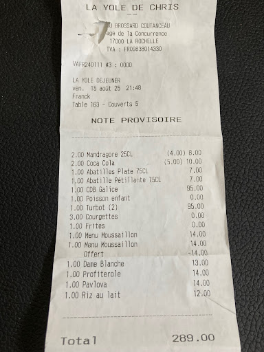 5.09.2024 I visited the restaurant with my family. At the beginning, the table was set for us but only for me and my husband, my son did not get anything⊠Only when we ordered food for my son with great reluctance was the table set for him. We got fish which was cold but good in taste, while my son did not get anything, he was served to the table after our food was almost eaten⊠I had the impression that they did not want to serve us because we were with children, the staff laughed at us from the restaurant. I assume that this place was a family place because inside there was a table for feeding the child and changing table in the toilet. Unfortunately, I cannot recommend this place because the service and atmosphere were not pleasant. I had the impression that we were constantly watched. We wanted to spend our last day in La Rochelle in a nice family atmosphere, but it was not. If the service had been polite, nice, we would probably have left a big tip and ordered more things.. the restaurant should have more respect for its customers, no matter if they come with or...