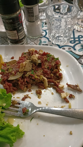 Amazing experience. My wife's meal was superb. Mine was awful. We booked an outside table for 8pm. Good job we turned up early as they didn't expect us and a young waiter, possibly a student, dismissively informed us they didn't take bookings for outside seating. Luckily the young black guy I booked with was on hand and he really put himself out to create an outside area for us. It was an exceptionally hot evening and the Rose wine we ordered wan't cold enough. Guess what...they were unable to supply us with more than a couple of lumps of ice. The Big Tapas starter was good. My wife's lamb shank was good. My steak was 50% inedible. Apart from the young student type all the other waiters were most attentive and entertaining. We sailed into La Rochelle for a week before heading on south. We don't expect haute cuisine but appreciate a good atmosphere. As I said, it was...