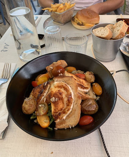 Nous sommes allés manger en famille. Pour cela nous avions réservé à l'avance, nous nous sommes malheureusement retrouvés sur une table en hauteur alors que nous avions deux enfants en bas âge avec nous et aucun moyen de trouver une autre table d'après la personne qui nous a accueilli et qui a été fortement désagréable. Alors qu'il restait un côté de la terrasse avec des tables vides et qui le sont resté par la suite. Les serveuses n'ont pas été très agréable, aucun sourire... Une de mes filles a été servi avant même que nous ayons l'apéro et ensuite tout est arrivé en même temps, l'apéro et les plats ainsi qu'une bouteille de vin qui s'est avéré imbuvable. Et pour couronné le tout le repas n'était même pas bon. Nous avions pris deux moules marinière (seul plat valant le coup), deux margarita, une reine (similaire a des pizzas dominos) et du bœuf cuisson saignante qui ne l'était pas du tout. La pina colada était la pire de ma vie. Malgré son emplacement très sympa et sa jolie terrasse je ne recommande pas du tout...
