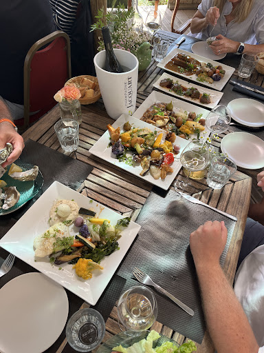 Read moreUne très bonne adresse pour y manger dans un magnifique cadre. On s’est régalé. Point négatif sur les gérants qui n’ont pas été très aimables avec nous. Nous sommes arrivés à 19h (l’ouverture) car nous n’avions pas réservé. Le restaurant était vide et nous avons demandé à être installé à l’ombre. Sur toutes les tables, nous avons eu le choix entre deux tables pleins soleils. Les gentils serveurs ont essayé de faire au mieux pour nous aider mais rien à faire pour les propriétaires. Nous sommes donc allé au soleil en attendant de manger. La propriétaire a même glissé un « ah bas ils savaient pour le soleil ». À noter que la plupart des clients sont arrivé à 20h30, heure où nous sommes partis… Le chef, même chose, pas de réponses aux salutations ni même quand on lui fait un compliment sur sa cuisine quand il passe à côté de nous. Il est peut être sourd et muet qui sait… Bref, on y mange bien, on est très bien reçu par les jeunes serveurs mais pas sûr pour les patrons. Ce soir, ils n’ont pas refléter le soleil qu’on a eu dans nos assiettes et sur notre dos durant tout le repas. À voir si on...