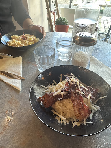 L acceuil a été sympa et agreable donc 1ere impression top ,mais quelle déception au moment de déguster mon plat de pâtes a la coppa et au gorgonzola !!!! Je me suis retrouvée devant une assiette complètement insipide sans goût et surtout sans gorgonzola ni sel ni poivre juste des pâtes trop cuites à la crème avec 4 tranches de coppa (14 e) ,je l ai bien sur signalé mais on m a affirmé qu il y avait du fromage, il n y en avait absolument pas !!!!et je n ai pas perdu le goût après 1 covid je vous le garantie et idem pour les pâtes carbonara de mon conjoint sans aucune saveur !!!je pense que la personne en cuisine n est absolument pas a la hauteur et surtout pas cuisinière car ce plat est d une grande simplicité à réaliser !! bien entendu nous ne conseillons pas ce lieux et nous ne reviendrons pas !!! finalement je pense que nos plats ont été réalisé par un enfant...