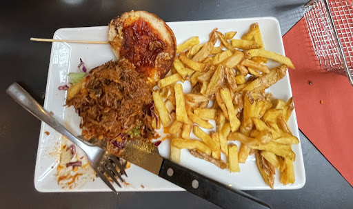 Déco sympa, bon choix de bières, personnel accueillant. Tarifs restent raisonnables si on prend la formule Burger + dessert + bière. Cuisson de la viande respectée pour le burger, difficile à manger cependant car tout s'effondre et le fromage se fait la malle avant même que l'assiette n'arrive. C'est dommage car le burger est plutôt bon, la viande a du goût et semble être de qualité mais peut être que le pain est trop friable, ce qui oblige à manger au couteau et à la fourchette. Le gros point noir c'est les frites, c 'est une catastrophe ! Très mal cuites, je pense que ce n'est ni la bonne méthode de cuisson ni la bonne variété de pommes de terre ( il faut de la Bintje ou de la Charlotte, point barre ). Elles étaient presque brulées, toute molles et huileuses, taillées trop petites, vraiment pas agréable à manger. Même le contenant n'est pas pratique, il glisse dans l'assiette et se renverse, j'ai tout versé dans l'assiette car ça n'a aucun intérêt autre que visuel. C'est dommage car c'est quand même pas sorcier de faire des frites ! Le dessert était correct sans plus. Au final je met 3 étoiles plutôt pour le cadre, ça serait très bien si il y avait plus de soin apporté à la cuisine ( on vient quand même pour manger à la base ! ). C'est un peu dommage de manger moins bien que chez soi. Les cuisinières ont l'air jeunes, c'est peut-être pour ça, il manque un peu d'expérience pour cet établissement plutôt récent. Je reviendrai quand même dans quelque temps pour voir si il y a de l'amélioration, alors...