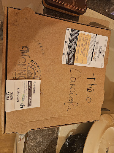 I ordered with UberEats a Carciofi Napolitan Pizza đ, a Lemonade and a Tiramisu at Nonno Leo Pizzeria. I must confess that I was quite disappointed with tonight's order. The expensive 16,90⏠Pizza đ was delivered more than an hour after the order was placed and came cold. Have to add that the Pizza đ had nothing to do with a true Napolitan Pizza đ; no thin crust nore thick extoriors.The 14⏠Tiramisu had no texture or any coffee flavor to it. Moreover, the time of order preparation on the UberEat's delivery ticket was grosselly scratched out twice for different times (initially 7:49 / 8:00 / 8:19 / 8:09). To finish off, they stick a little note on the Pizza box explaining to people how to heat your Pizza đ in the oven. What happens to people that order a Pizza đ and have no oven to heat the pizza in (my case) ?