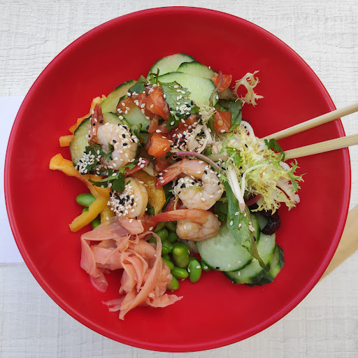 Le MUST, c'est le poke bowl qui peut être très copieux car on a l'occasion de mettre tout un tas de choses et jusqu'à ce que le pot soit plein : tomates, salades, mangues etc. avec du saumon/poulet/thon etc. Possible aussi de mélanger les sauces, ce qui, pour moi, rend le tout bien meilleur.