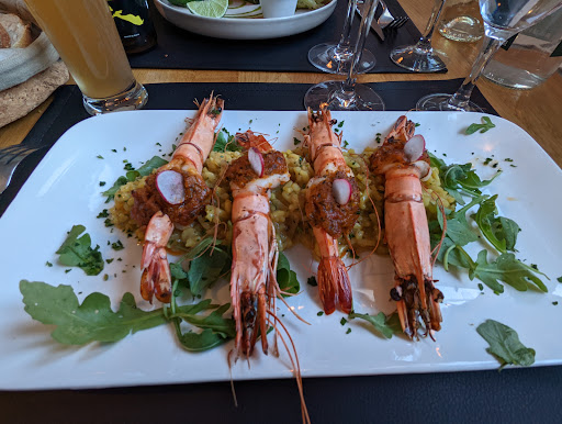 The best food on the Island! This incredible little restaurant wasn't even on the list of recommendations from our resort (but it is now) when my husband found it. We walked in, no expectations, after a long day exploring and left knowing we would be back often. It is a small, curated menu, often what's served today may not be served tomorrow (chef Patrick's motto is essentially, if it's wonderfully fresh today, he will create magic with it). The entire menu is mostly local, include the beers. Try any of the entrees; the stuffed zucchini, the razor clams baked in garlic crumbs (if available), avocado mousse salad (again if available), octopus carpaccio, and my absolutely favorite, bone marrow bake with a escargot creme fraiche (made us want to lick the bowl. For your main course, the gambas risotto, skirt steak, fish wrapped in banana leaf (with a side sauce that was addicting) and finish with strawberry creme brulee, fondant chocolate with salted caramel ice cream. This divine find of a restaurant is a reason to come back often to Ile de Re, if only to see what this husband and wife culinary team will create next. You will not be...