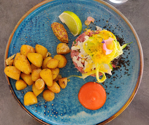 Restaurant sympathique, personnel accueillant, bon choix de musique, même si quand vous êtes en terrasse vous entendez plus les boumboum du restau d'à côté. Niveau cuisine en revanche, assez decu. Une carte plus que succinte. Les cartes surchargées ne sont pas bon signe mais là c'est vraiment très minimaliste. Je me suis demander si c'était parce que les cuisines ne voulaient pas prendre de risque ...et j'avais raison. Niveau cuisine, on ne peut pas dire que ce soit mauvais mais c'est très en deça de ce que nous espérions au regard des autres avis. L'assiette à partager est assez chiche pour 15€, pour le plat, la bavette était bien cuite mais c'est à peu près tout. De simple pomme de terre grenaille au four, une salade verte assaisonnée ....et voilà, l'assiette est faite. Le seul risque et parti pris tient dans la sauce originale mais clivante... Nous n'avons pas pris de dessert car la carte n'était pas claire ("comme une tarte au chocolat"... Mais ce n'en est pas une, comme nous a répondu la serveuse très aimable au demeurant... Pas très convaincus, surtout pour 12€... Pas trop envie d'être déçus une fois de plus). Une dame à côté de moi à commander la même chose et sa salade avait aussi de la tomate et des pickles... Nous n'avons eu que de la salade verte. Pourquoi cette différence... Problème d'organisation en cuisine, pourtant la carte est si courte qu'ils ne peuvent pas être depassés ou surpris a priori. Un dessert du jour ? Oui, une verrine de citron avec du spéculos, selon notre serveuse, mais la serveuse de la table à côté de nous à annoncer au clients une verrine de citron meringuée ... Bref, un peu approximatif tout ça. Le sentiment que ce restaurant commence à se reposer sur les lauriers du passés. C'est dommage c'était notre seul restau de cette semaine de vacances, on avait pris le temps de le sélectionner et on en ressort déçus.... Le gérant a l'air quand même d'aimer ce qu'il fait et faire son travail avec coeur et le personnel était très accueillant, mais je pense qu'il faudrait redresser un peu la barre parce que la cuisine n'est pas...