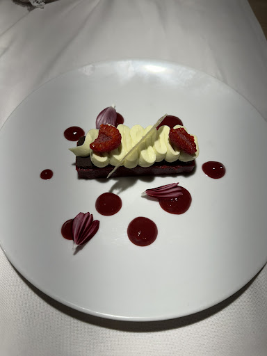 The dessert was a true work of art. The delicate layers of flavor, from the rich chocolate to the light and airy cream, combined with the tartness of fresh raspberries, made for a perfect end to the meal.