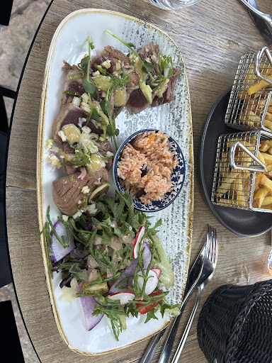 Read moreNous avons adoré l’ensemble des plats goûtés. En entrée, le saumon fumé maison est excellent. Les couteaux et les huîtres étaient très frais. En plat, les moules étaient très bien servis. Pour ce qui concerne le tataki de thon, la sauce était particulièrement originale et le poisson hyper fondant. De plus, les assiettes sont très bien présentées. La cuisine est élaborée, inventive et surtout faite avec des produits locaux. De plus, les serveurs sont très sympathiques et attentionnés envers les clients. Le cadre est très joli avec une belle terrasse, l’endroit se veut très classe et ça se reflète dans l’assiette. Bravo encore pour cette belle soirée et cette expérience...