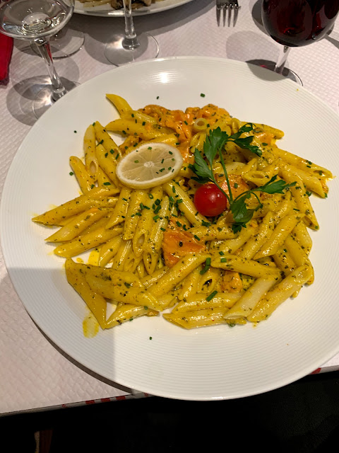 Pas terrible Sommes venues avec une amie la veille du marathon en ayant pris soin de réserver Notre table était dans le passage et malgré une arrivée très tôt (19h) le serveur a refusé de nous changer de place même si beaucoup d’autre tables de 2 étaient alors dispos Je passe sur son impatience pour nous servir a peine installées La grosse déception c est sur la qualité (alors que très bon souvenir de l’époque Myrco) Les pâtes baignaient dans une sauce grasse qui nous est resté sur l’estomac jusqu’au matin de la course Le moelleux au chocolat a mis 2´ à être servi, normal décongelé au micro ondes il est fade et mastoc Bref faudra revoir l’organisation avant un événement où évidemment la clientèle vient en nombre et mérite un bon traitement car courir l’estomac lourd n’est en rien recommandé