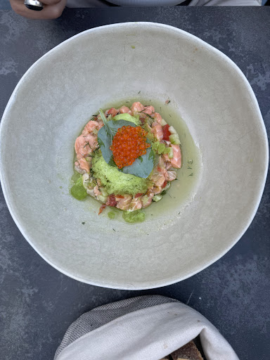 Read moreUn restaurant d’hôtel. La carte est limitée mais recherchée. Étant logés à l’hôtel nous y avons mangé deux soirs. Le premier soir un peu déçu sur le poisson, plat sans grand relief et surtout portion peu généreuse, nous avons dû ajouter une assiette de fromage (moyenne fromage trop froid) pour compléter le repas… Le second soir en revanche nous avons choisi un menu viande, et là en revanche les portions était nettement plus copieuses et assiettes de qualité et préparation plus originale (l’épaule de veau façon blanquette il fallait y penser…) Il y a de la fantaisie chez ce chef sans doute plus à son aise avec les préparations de viandes. Les desserts sont bons, mais là aussi un peu plus de générosité ne gâcherait rien… Café bon (je le note parce que venant d’’Italie c’est assez rare que nous apprécions le café servi en France) penser à des mignardises faites maison! Le service pêche un peu, l’équipe est jeune, plutôt sympathique mais manque d’expérience, on sent qu’il faudrait une figure de référence en salle pour les guider et stimuler.(pour le second service qui débute à 21:00 c’est assez maladroit de venir informer les convives à 22:30 que l’établissement...