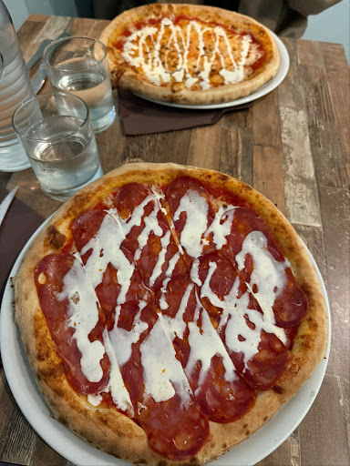 Les pizzas étaient délicieuses et généreuses : une Margherita bien équilibrée et une Arrabbiata relevée juste comme il faut, avec le supplément crÚme de mascarpone juste pour la gourmandise.