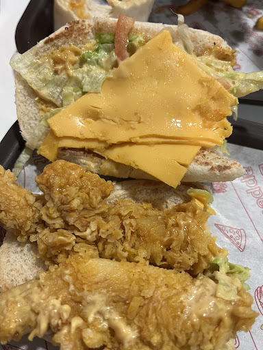 Le poulet à 0 goût, si celui de la farine pour la panure, mais aucun assaisonnement. Il est pas très croustillant. La galette de pomme de terre manque énormément de cuisson, c'était pateux. Mon conjoint arrive chercher la commande, et là incapable de prendre le prénom donné par téléphone.. Le menu enfant était incomplet, il y avait plus de caprisun, donc on ne donne rien en échange! Mais fait payer plein tarif.