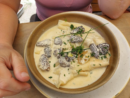 Je ne peux pas critiquer la cuisine car nous n'avons pas pu y goûter. En effet nous appelons à 13h pour savoir si nous pouvions manger la réponse est oui pas de problème d'ici 30 minutes. À 13h15 nous sommes sur place. Un accueil très bizarre d'un jeune homme avec un humour un peu lourd. Nous commandons deux bières en terrasse en attendant qu'une table se libère. Le serveur toujours avec son humour bizarre reviens 10 minutes après pour nous dire q'une bière n'est pas disponible. Je la remplace par une autre q'une dame nous amène nous disant qu'elle allait nous amener quelque chose à grignoter que nous n'avons jamais eu. Le serveur finalement nous amène la carte sur la terrasse sûrement pour gagner un peu de temps en prenant la commande sauf qu'il ne l'a jamais prise. Au bout de plusieurs minutes il y a une table de 2 personnes qui nous est proposée à l'intérieur. Nous attendons encore plusieurs minutes avant qu'il prenne la commande. Il est bientôt 14h30 et nous n'avons encore rien mangé. Je dis au serveur que j'ai faim il me répond qu'il me comprends et que c'est la faute de sa collègue de nous avoir accepté alors que l'on allait attendre longtemps d'après lui. Ras-le-bol nous nous levons pour sortir et en voulant payer nos deux bières qui coûtait 9,60 € il nous rétorque que l'on ne peut pas payer par carte bleue car c'est minimum 10 €. Sa collègue finalement arrive et demande quel problème il y a , commence à gueuler il n'y a pas d'autres mots et nous dit que l'on peut partir sans payer les bières. Bref un accueil...