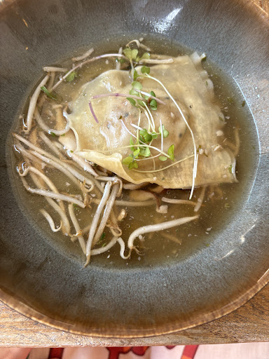 Read moreSans conteste mon restaurant préféré. Si vous êtes de passage à Bazas, l’arret chez Indigo devrait être obligatoire. Tout ici mérite largement 5 étoiles : l’accueil des serveuses, drôles et souriantes, toujours arrangeantes. Le menu avec un rapport qualité prix inégalable pour des saveurs à couper le souffle. L’ambiance chaleureuse dans laquelle on discute volontiers avec ses voisins de table pour commenter les plats consommés. Nous sommes (encore) revenus dans notre restaurant préféré, un samedi de marché. Pensez bien à réserver car la terrasse est souvent prise d’assaut. Pour aujourd’hui, nous avons opté pour la raviole de gambas dans son consommé. Magret de canard au jus de balsamique, polenta et padrones pour moi, filet de lieu noir à l’encre de seiche et avocat rôti pour ma mère. Enfin, petit craquage pour terminer : couple glacée aux nectarines fraîches pour elle, tiramisu citron framboise pour moi, un vrai régal. Alors n’hésitez pas et de tous temps venez manger chez l’Indigo ! Au plaisir de commenter nos repas...