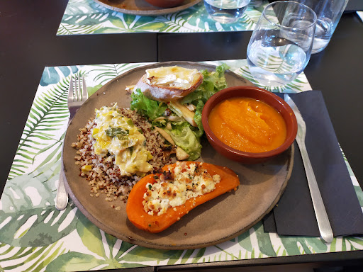 Nous nous sommes arrĂȘtĂ©s par hasard car nous cherchions un bon restaurant pour faire une pause sur notre trajet dâautoroute et nous avons bien fait ! Le restaurant est situĂ© au beau milieu dâune ferme et met Ă lâhonneur les produits qui y sont cultivĂ©s, il sâagit dâune cuisine saine, gourmande et de saison ; le tout Ă un prix trĂšs raisonnable . Le service est convivial et lâendroit chaleureux. On peut savourer des infusions Ă base de plantes cultivĂ©es Ă la ferme et il y a mĂȘme un magasin attenant en self service pour acheter leurs Ćufs, miel, lĂ©gumes. Un excellent concept pour valoriser lâagriculture locale ! Je...