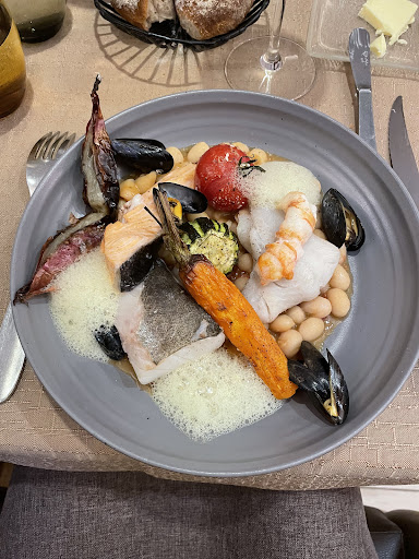 We arrived for lunch with our 2 small dogs and were taken far out back next to a wc to not disturb other clients, it would be completely fine with us, they made it weird not being able to communicate properly. 45 min wait for a starter and then 15 more for a main dish. The food was nice, we took cassoulet and saint jaques, salmon in cassoulet was...