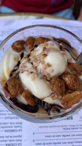 Vacation time: we were passing by in the afternoon and were lucky to reserve a table for our last evening in Perros. The manager was a very polite and smiling young woman who suggested us a couple of time slots for dinner. The pizza was served very quickly, 13 minutes after order, meanwhile we had wine and didn’t notice time pass even though we were quite hungry. The staff - very friendly and reactive. The outside tables are near the road so don’t expect quite and calm atmosphere, it’s lively, people passing by, waiting in the queue to be seated but it didn’t disturb our conversations. The deserts were amazing. Tiramisu recommended to try!!! And the SUNDAE chocolate was really delicious 🤤 Great experience of food and tastes. Thank you!...