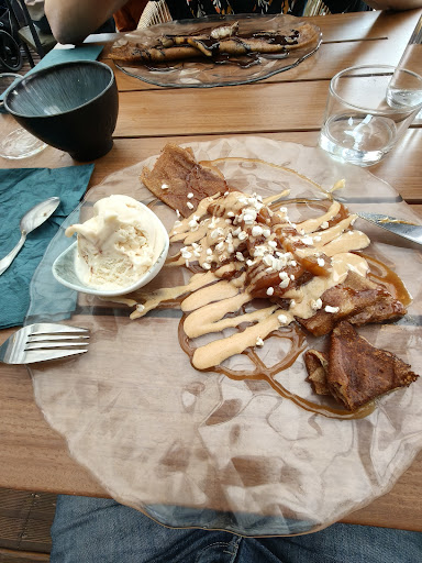 Read moreAprès une première tentative, service complet.. je décide de revenir le lendemain quitte à refaire 25min de route. Le menu me tentait bien et le premier contact avec une des serveuses était positif. Fin du suspense.. je ne regrette pas d'être resté sur mon choix! L'accueil est au top, l'agencement des tables est parfait. Concernant le principal, les galettes et crêpes sont très bonnes. J'ai pris la saint Jacques/andouille/lard fumé, accompagné de sa petite salade, pour un peu plus de 19€ il y a de quoi se régaler (on l'aurait même aimé plus généreuse !). Bon choix de crêpes sucrées pour le dessert, pour ma part j'ai terminé avec la pomme/sauce caramel/glace kouign Aman.. délicieuse ! Au final l'addition pour un adulte et un enfant est aussi salée que sucrée mais on est sortis tous les deux rassasiés et nous nous sommes régalés. (Toutes les galettes ne sont pas à 19€, pas obligé d'être gourmand !) En tant que fidèle touriste (Nordiste), je valide et je recommande cette...